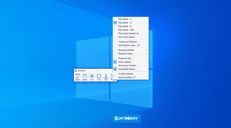 Unduh TinyTask untuk Windows. Putar proses apa pun kapan saja, yang tersimpan dalam berkas terkompresi kecil yang hanya membutuhkan sedikit ruang. Anda dapat membuat berkas exe, membuka dan menutup program, beralih antar tab peramban, menulis di Notepad, dan melakukan banyak tindakan kecil lainnya hanya dengan satu klik.